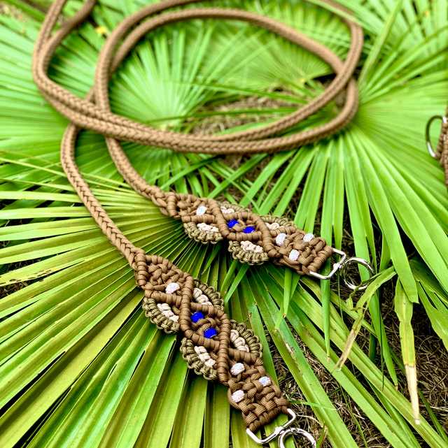 Les rênes Onkä®️Horses sont réalisées à partir de Paracorde 550 à sept brins, sélectionnée pour sa tenue irréprochable. Elles sont ornées de perles pavées de véritables cristaux de verre, et possèdent des mousquetons métalliques en acier inoxydable, choisis pour leur durabilité .