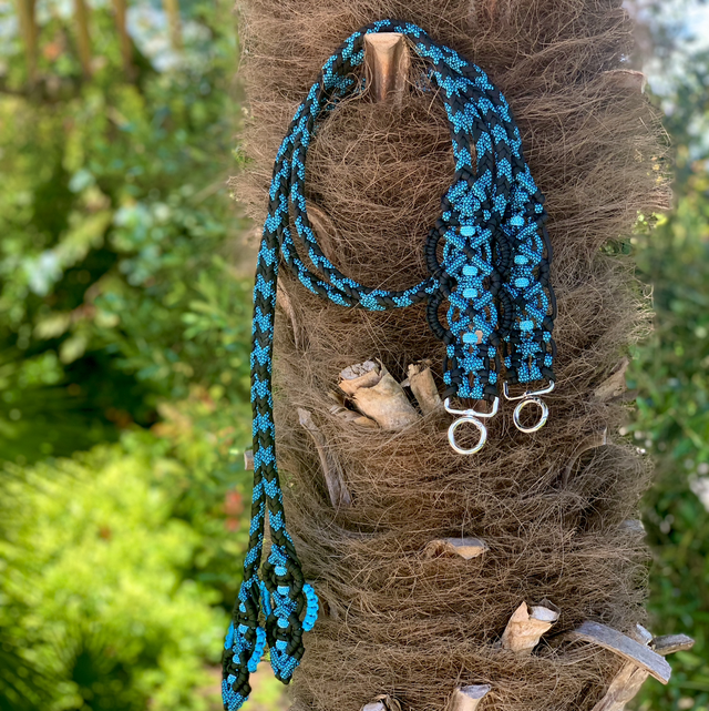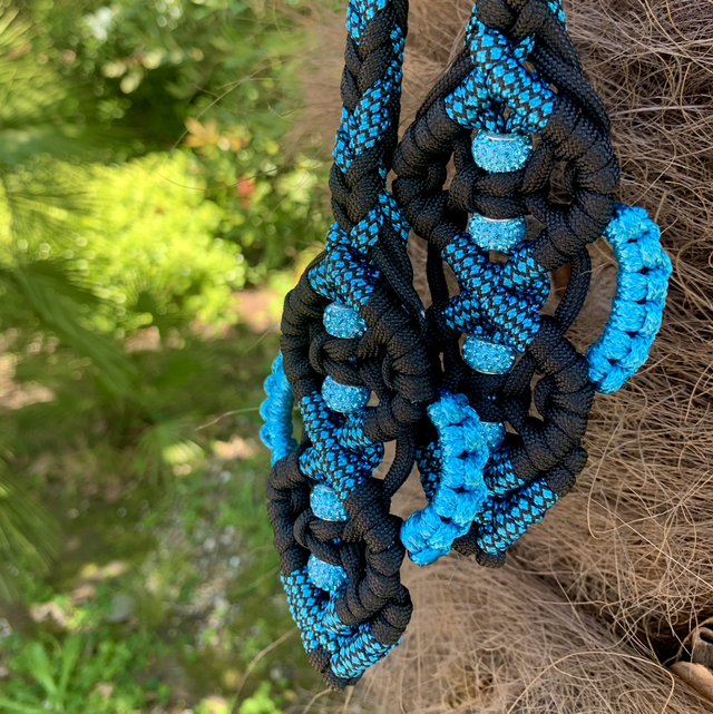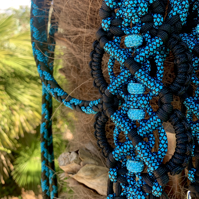 Les rênes Onkä®️Horses sont réalisées à partir de Paracorde 550 à sept brins, sélectionnée pour sa tenue irréprochable. Elles sont ornées de perles pavées de véritables cristaux de verre, et possèdent des mousquetons métalliques en acier inoxydable, choisis pour leur durabilité .